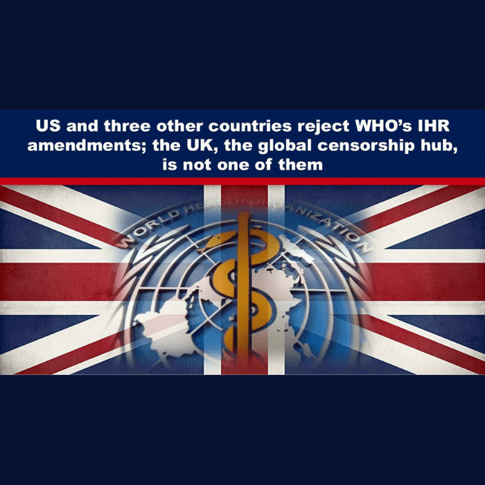US and Three Other Countries Reject WHO’s IHR Amendments – The UK, the Global Censorship Hub, Is Not One of Them
